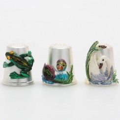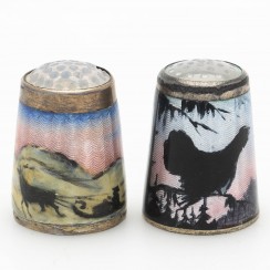 ![]() 357191 - Наперсток (с фиолетовым ободком). Серебро, эмаль. Вес 4 гр, 830 пр. Высота 2,3 см, диаметр 1,6 смна эмали скол381590 - Наперсток (с миниатюрой). Серебро, эмаль. Вес 4 гр, 925 пр. Высота 2 см, диаметр 1,8 смскол на эмали |