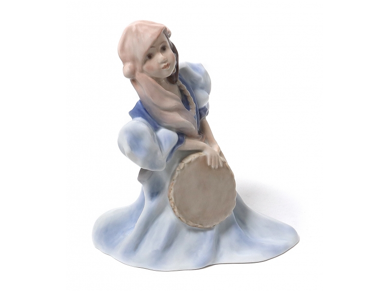 Серия включает следующие статуэтки: 2533 Девочка (в одежде женщины). 2544 Мальчик (в одежде мужчины). 2548 Девочка цыганка (в костюме цыганки с бубном). 2549 Witch (в костюме ведьмы с метлой). ================================ Porcelain figurine "Gipsy girl". Barnets fantastiske verden (the make-believe world of children). Hand-painted underglaze.