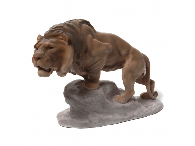 Фарфоровая фигура (статуэтка) "Лев на скале". Ручная подглазурная роспись.