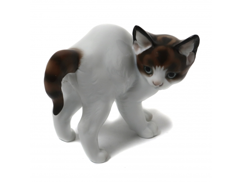 Фарфоровая фигура (статуэтка) "Стоящий котёнок" (Испуганный котенок). Ручная подглазурная роспись.