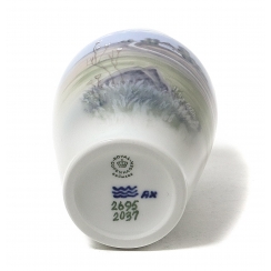 Denmark, Copenhagen, Royal Copenhagen, year 1966. Painting design: 2695 Model: 2037. The initials of the artist painted this vase: AX . Factory mark.