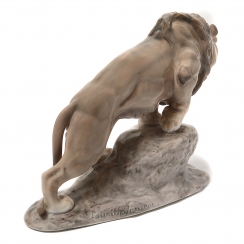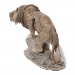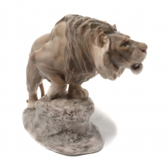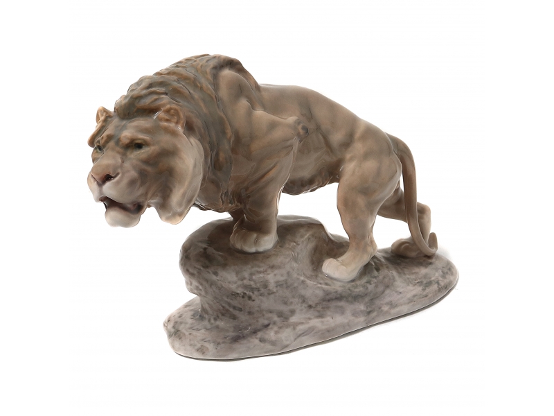 Фарфоровая фигура (статуэтка) "Лев на скале". Ручная подглазурная роспись.