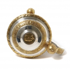Height at top of the lid: 20 cm, diameter of the top: 14.5 см. Volume: 1600 ml. Weight: 878 grams of silver 830 fineness.