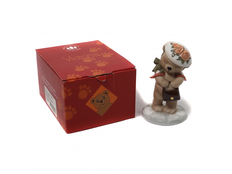Годовая фарфоровая фигура (статуэтка) "Медведица Виктория в шляпке с сумкой" из серии о семье плюшевых медведей Виктора и Виктории. В оригинальной коробке.