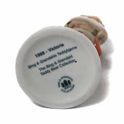 Представленная фигурка –смущенная медведица Виктория, принарядившаяся для танцев, в ожидании медведя Виктора. ========================================== Годовая фарфоровая фигура "Teddy bear Victoria wearing her hat and holding her bag". from the series Victor and Victoria’s Family. In the original box.