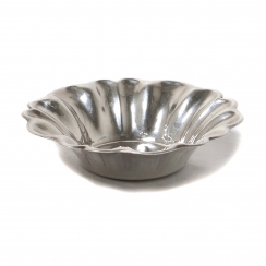 Высота: 2,5 см, диаметр: 10 см. Вес: 43 грамма серебра 900 пробы. ======================== Silver bowl with scalloped edges.