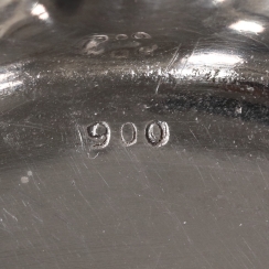 Height: 2.5 cm, diameter: 10 cm. Weight: 43 grams of silver 900 fineness.