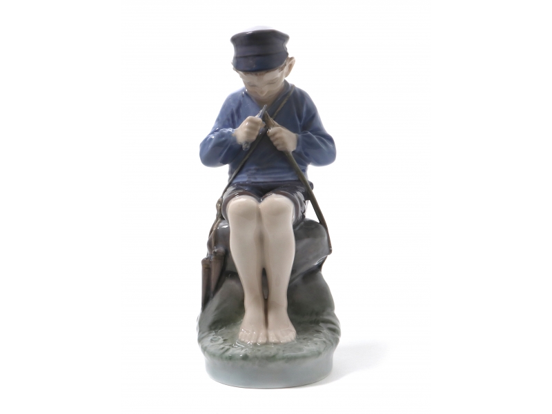 Фарфоровая фигура (статуэтка) "Мальчик, строгающий прутик". Ручная подглазурная роспись.