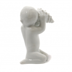 193091 - Фарфоровая фигура "Мальчик-русалка с ракушкой". Bing & Grondahl.Фарфоровая фигура (статуэтка) "Мальчик-русалка с ракушкой". Нерасписанный белый фарфор. Белая глазурь.