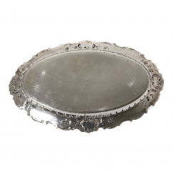 Общий вес: 214 граммов серебра 835 пробы. ========================= Small silver sugar bowl and creamer on a tray. Decorated with floral ornaments.