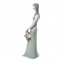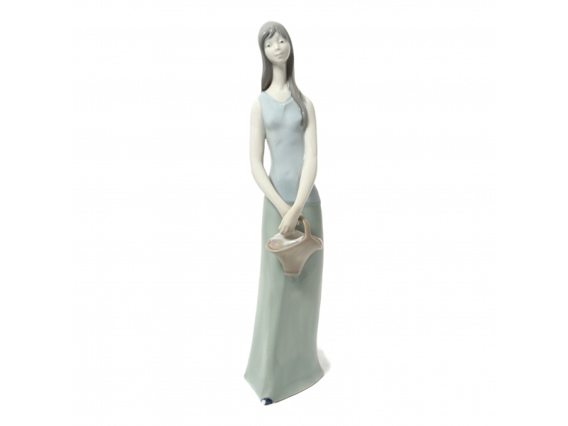 Фарфоровая фигура (статуэтка) "Девушка с корзиной". Ручная подглазурная роспись.