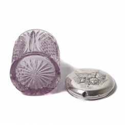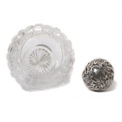 На крышке вмятины и сквозная трещина. ========================= Bottle. Crystal, sterling silver 925 fineness.