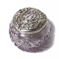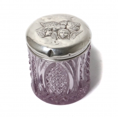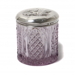 282504 - Банка. Хрусталь, серебро 925 пробы. Англия, 1910 годБанка. Хрусталь, серебро 925 пробы. В крышке имеется круглое отверстие диаметром: 1,7 см.