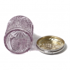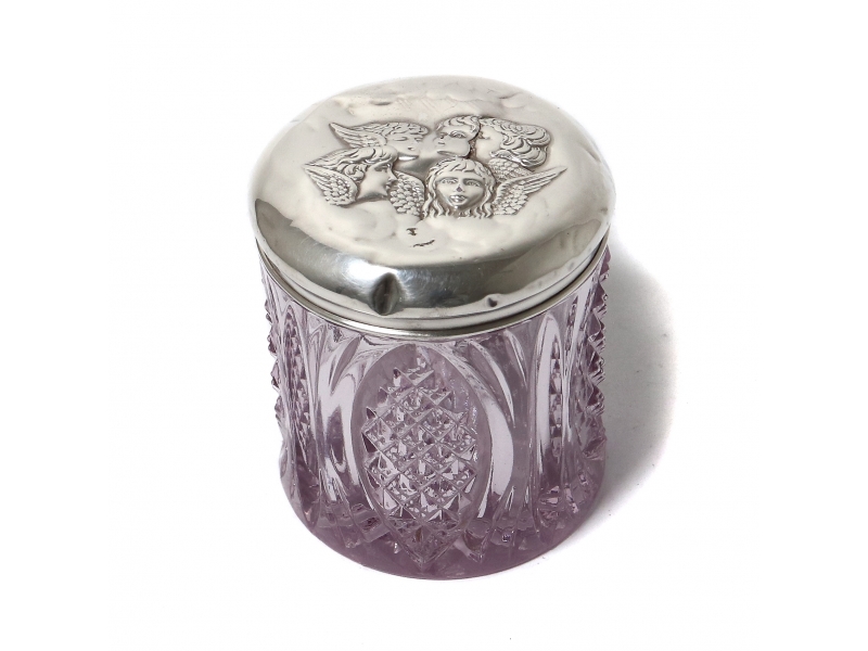 На крышке несколько сквозных дырочек. ========================= Jar. Crystal, sterling silver 925 fineness. The lid has a round hole with a diameter of 1.7 cm.