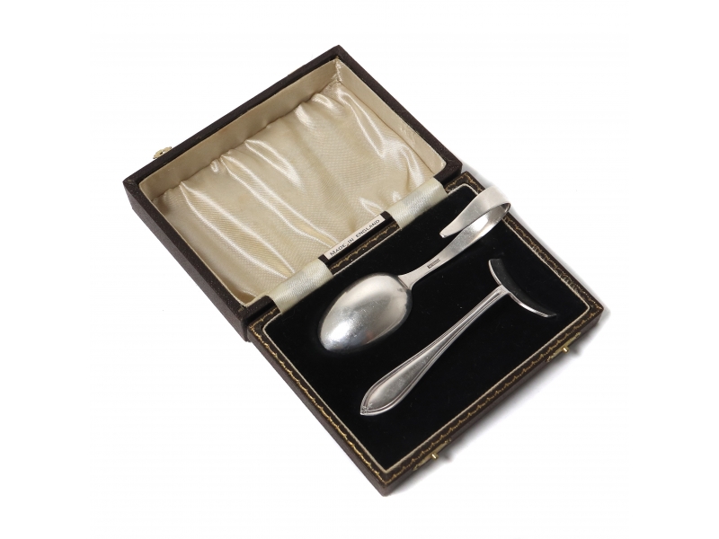 Серебряный детский набор: детская ложка и беби пушер. В коробке.