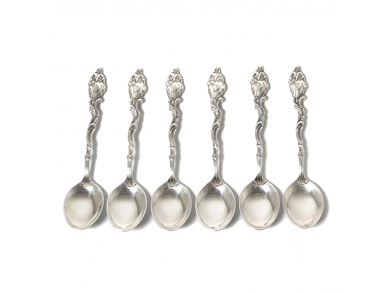 С гравировкой. =============================== Silver coffee spoons, 6 pcs. Pattern "Lady with fan". Designed by Ulla Winbladh.