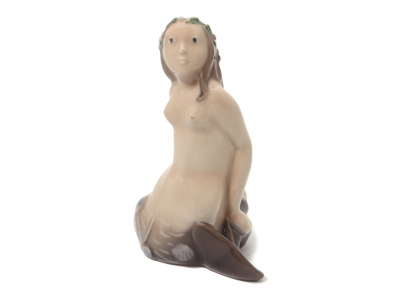 Такая же фигура выпускалась фабрикой Royal Copenhagen, модель номер: 266 (фаянсовая). ============================= Porcelain figurine "Mermaid". Hand-painted underglaze.