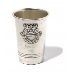 Серебряная стопка. с геральдическим символом Швеции (три короны и венок лауреля и стрелой).