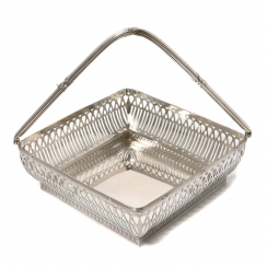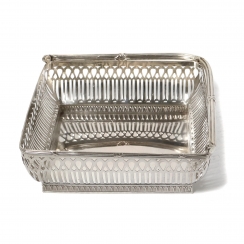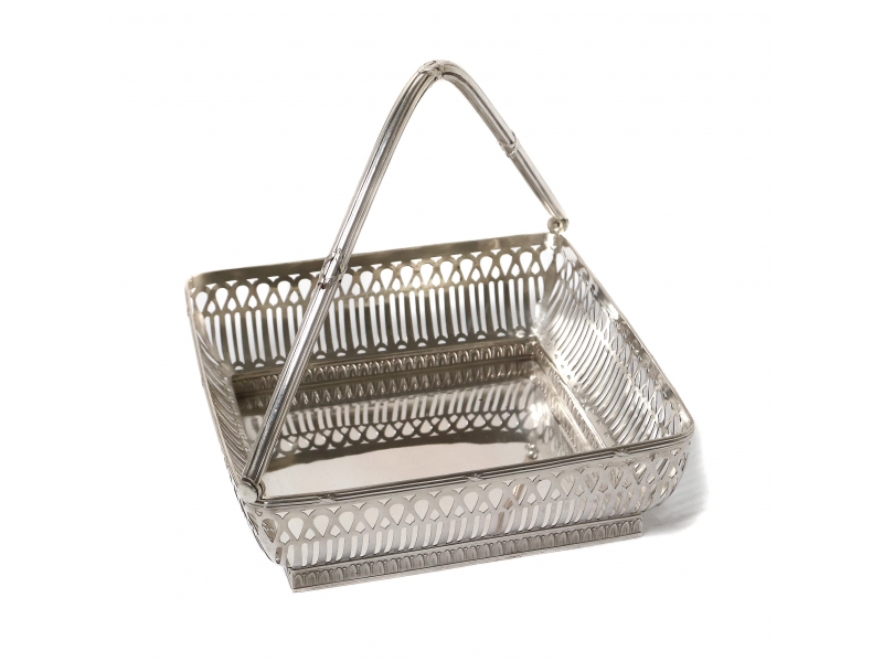 Серебряная ваза с прорезными боками и перекидной ручкой.