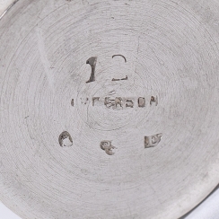 Высота: 5,3 см, диаметр верха: 3,4 см. Объём: 30 мл. Вес: 18 граммов серебра 830 пробы.