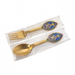 Годовые десертные ложка и вилка "Младенец Иисус". Серебро, позолота, эмаль.