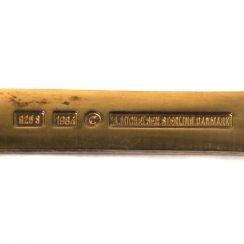 Mark of the designer. «A.MICHELSEN Sterling Danmark» - mark, confirming that the item is made in Danish workshop, of the supplier of the Danish royal court, and has the sterling silver. Each year since 1910 the eminent Danish manufacturer of silverware A. Michelsen produces the Christmas Spoon and dessert sets, consisting of spoons and forks. Danes, and not only they, traditionally include the cutlery of this series in Christmas gifts for the relatives. The most interesting Danish designers, painters and sculptors become the authors of design of these collection cutlery.