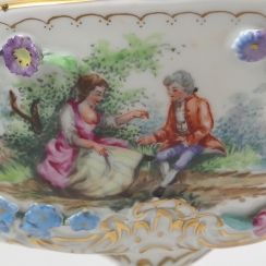 Несколько микросколов на цветах. ============================== Porcelain bowl on a foot, decorated with a miniature story and relief flowers. Hand-painted, painted with gold.