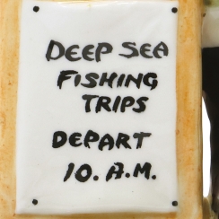 Фарфоровая фигура (статуэтка) "Все за рубежом" (Моряк с попугаем на плече около тумбы с часами и инфорамционной табличкой). Ручная роспись.