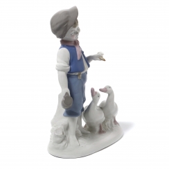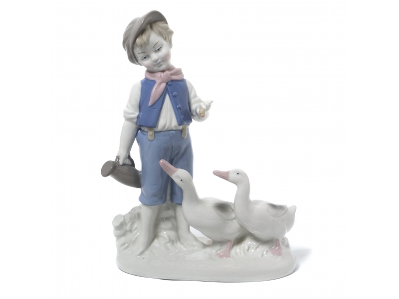 Фарфоровая фигура (статуэтка) "Мальчик с утками". Ручная подглазурная роспись.