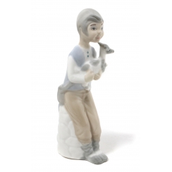 Фарфоровая фигура (статуэтка) "Мальчик с козлёнком". Ручная подглазурная роспись.