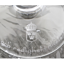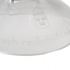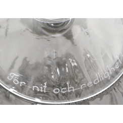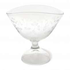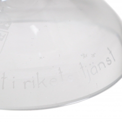 Box dimensions: 25 x 26 x 20 cm. Inscription inside the box: T his crystal bowl is blown, shaped and engraved by hand in the Kosta foundry. It is made of the finest crystal imaginable with a lead content of 24%. It took a whole day for a master engraver to engrave the sheer pattern in the shape of a Småland Linnéa into the crystal. The decoration was designed by artist Lisa Bauer. Each bowl is a unique work, as no two are exactly alike. True craftsmanship has beauty and brilliance, but never machine-like precision. Therefore, each bowl has its own individual characteristics that testify to the personal fashion and commitment of the foundry team and the engraver.