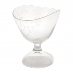 Хрустальная ваза на ножке, декорированная флористическим узором, выполненным в технике ручной гравировки. Дизайн "Linnea" (Линнея). Линнея (лат. Linnaea) — это род вечнозелёных стелющихся кустарничков семейства Жимолостные. В оригинальном деревянном футляре-коробке с описанием на шведском языке.