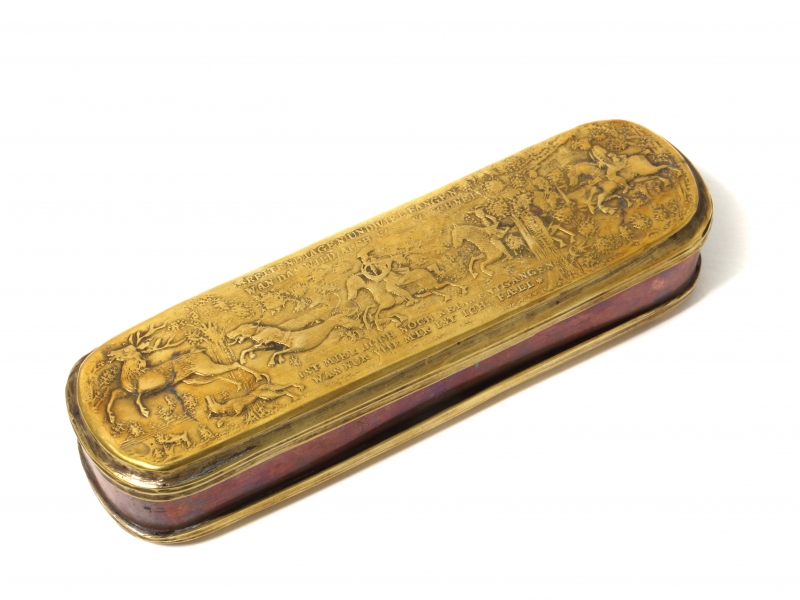 Табакерка (шкатулка) со сценой охоты на крышке.