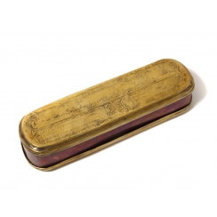 Высота: 3 см, длина: 15,5 см, ширина: 4,5 см. ============================= Snuffbox (casket) with a hunting scene on the lid.