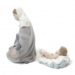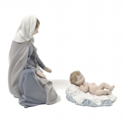 Фарфоровые фигуры (статуэтки) "Дева Мария" и "Младенец Иисус" относится к серии фигур "Рождественский вертеп". Ручная подглазурная роспись.