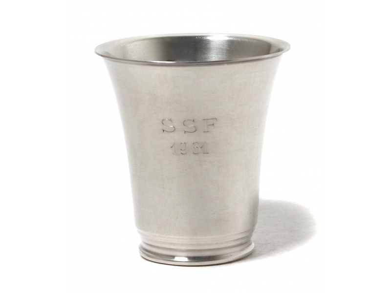 Height: 6.5 cm, diameter the of top: 5.8 cm. Volume: 80 ml. Weight: 37 grams of silver 830 fineness.