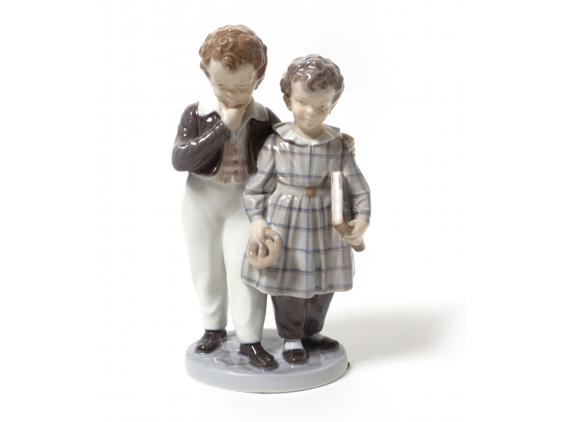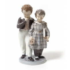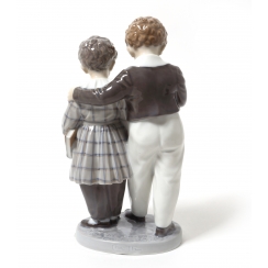 Фарфоровая статуэтка "Бегство в Америку (Полет в Америку)". Фигура посвящена книге, в которой брат и сестра сбегают от родителей в Америку. Ручная подглазурная роспись.