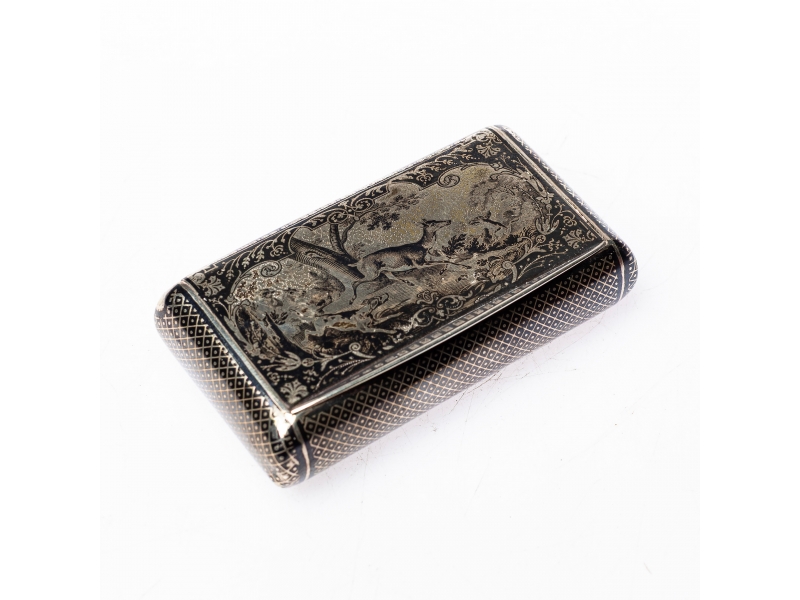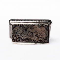 Коробка со сценой охоты. Серебро, чернь, позолота.