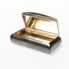 Dimensions: 8.6 x 5 x 2 cm. Weight: 117 grams of silver 830 fineness (but most likely 950 fineness).