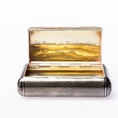 С гравировкой. ========================== Box with a hunting scene. Silver, niello, and gilding.