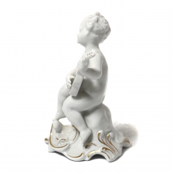 Фарфоровая фигура (статуэтка) "Обнаженный мальчик (путти) с гитарой" из серии "Оркестр" (Квартет). Белая глазурь. Роспись золотом.