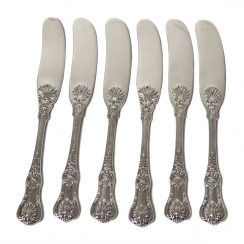 Цельносеребряные десертные ножи, 6 шт. Дизайн "English King", разработан Чарльзом Гросжеаном. Патент 1888 года.