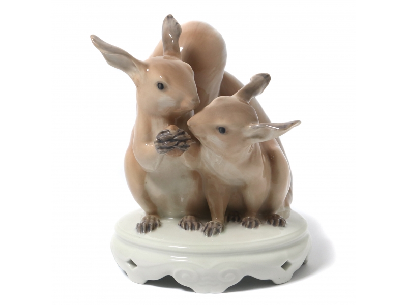 Статуэтка первого сорта. Без сколов, повреждений и без реставраций. =========================== Porcelain figurine "Squirrels-pair". Hand-painted underglaze.