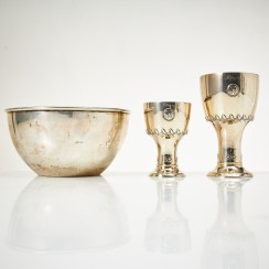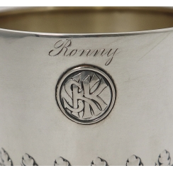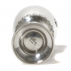 Высота: 16 см, диаметр верха: 7,2 см. Объём: 200 мл. Вес: 79 граммов серебра 830 пробы.