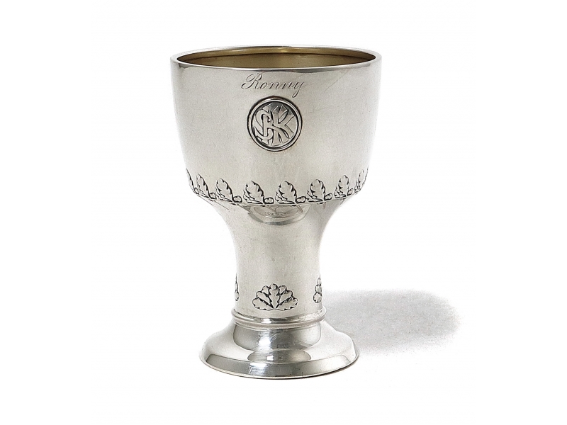 С гравировкой "Первый приз Ронни в классе победы 1934 год". ========================= Silver goblet (wine glass).