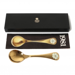 Georg Jensen, Дания: Коллекционная годовая десертная ложка "Дрёма белая" 1981 год. Серебро, позолота, эмаль.