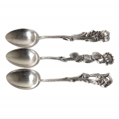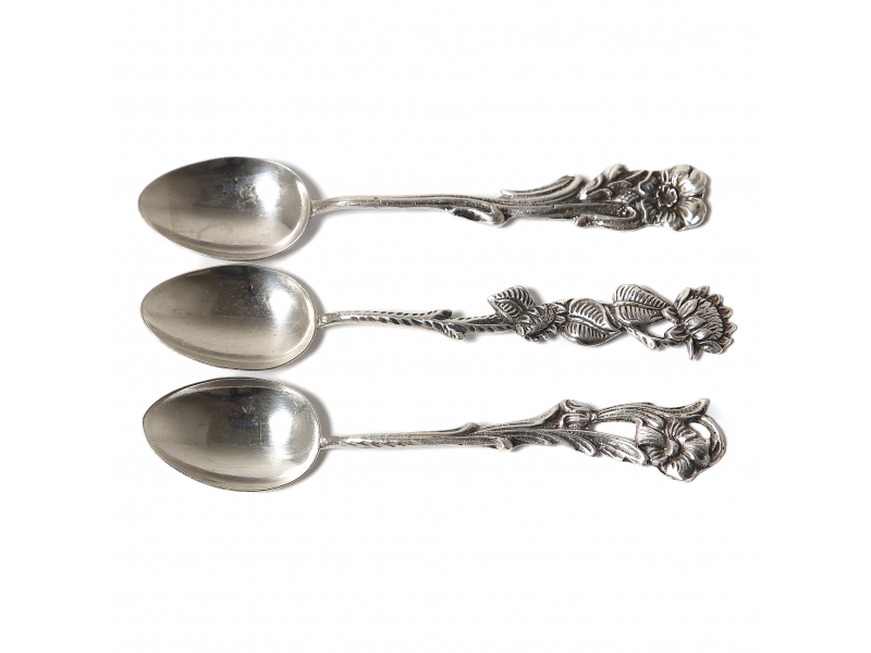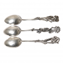 Серебряные кофейные ложки, 3 шт. "Немофила («американская незабудка»)", "Подсолнух" и "Виола" из серии "Дикие цветы Швеции".