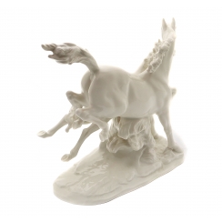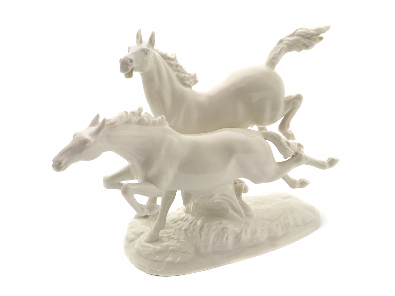 214917 - Фарфоровая фигура Пара скачущих лошадей. HutschenreutherБольшая фарфоровая фигура (статуэтка) "Пара скачущих лошадей". Нерасписанный белый фарфор. Белая глазурь.
