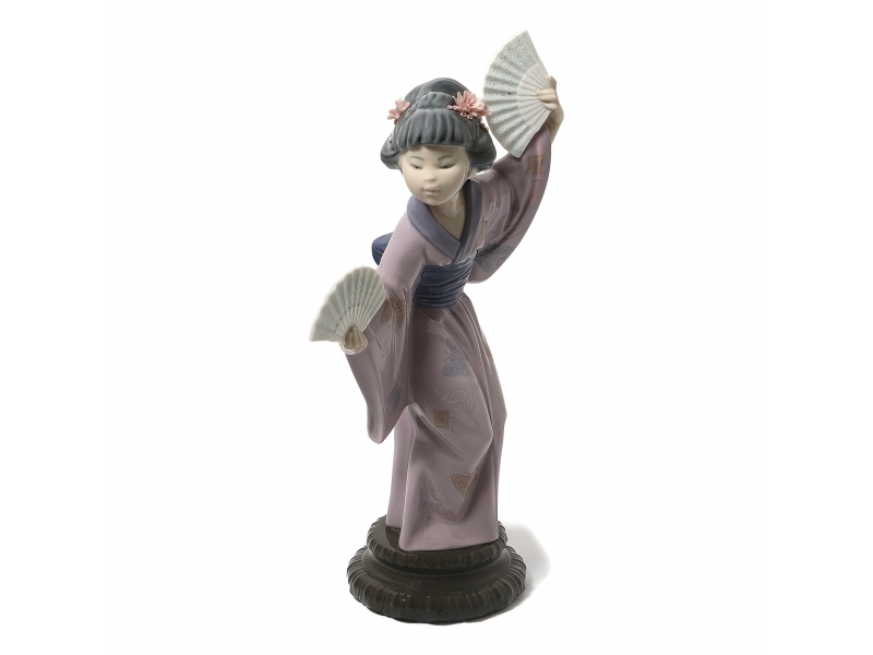 Без сколов, повреждений и без реставраций. ================================ Porcelain figurine "Madama Butterfly" (Japanese woman with fans). Hand-painted underglaze.