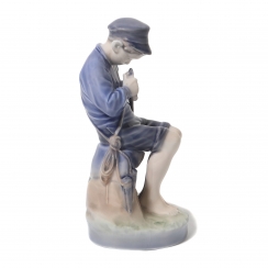 Фарфоровая фигура (статуэтка) "Мальчик, строгающий прутик". Ручная подглазурная роспись.